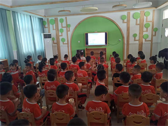 首先,以班为单位老师对孩子进行认识国旗,国徽,听国歌,学习升旗的活动。主题班会结束,教师进行鼓乐队的展示,带孩子们到室外进行升国旗。让孩子充分感受到国旗下成长的快乐。升旗仪式结束后,老师带领孩子到三楼会议室,通过红色电影的形式对孩子进行爱国主义教育,我们设置了购票大厅,爆米花等环节,给孩子真实的影院感。活动结束,我们带领孩子跟家长进行分享:知道我们是中国人,我们的国旗是五星红旗,我们的国歌是《义勇军进行曲》让孩子从小树立爱国主义情感。